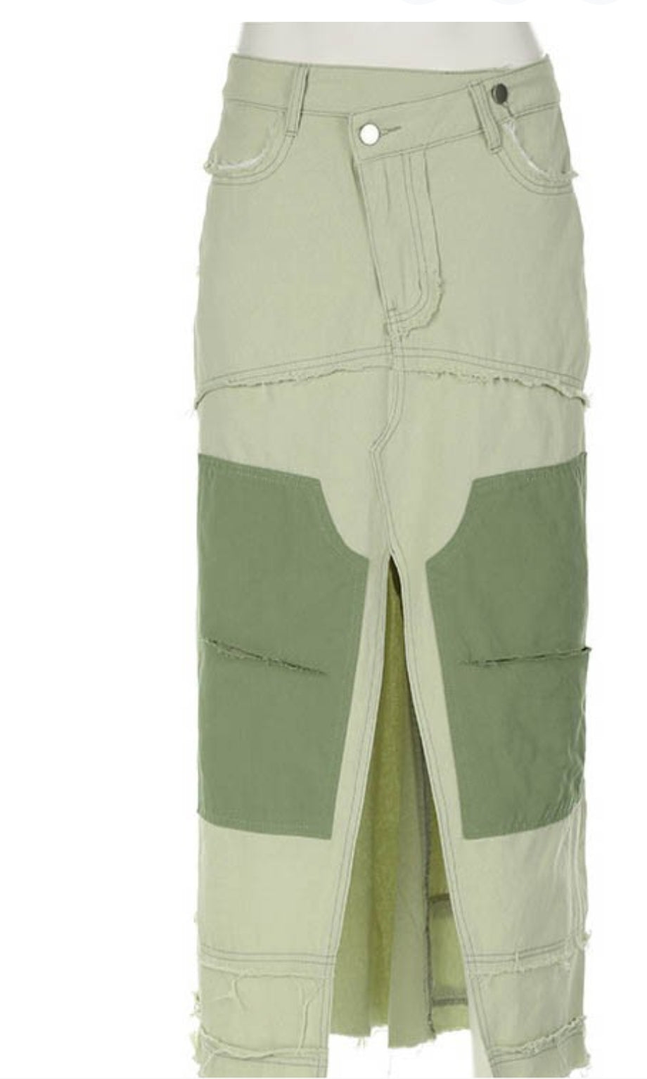 Lend a sartorial edge to your look with this denim split skirt, boasting a sleek, contemporary invert design.