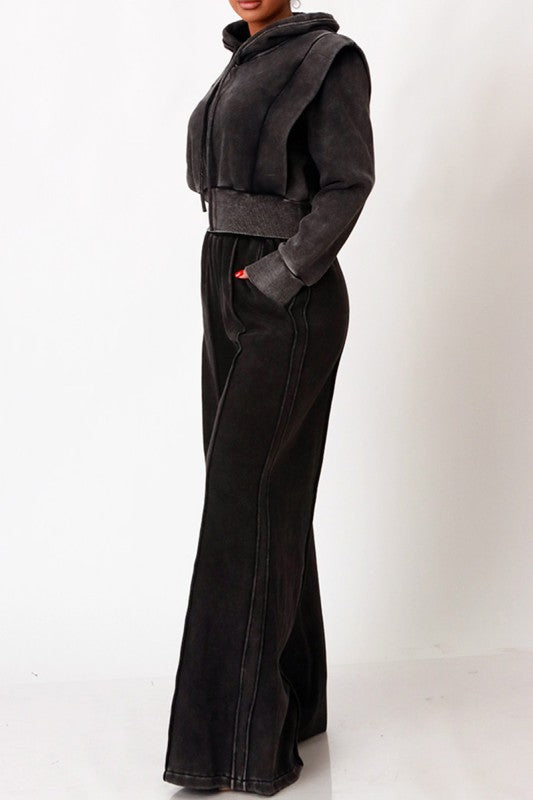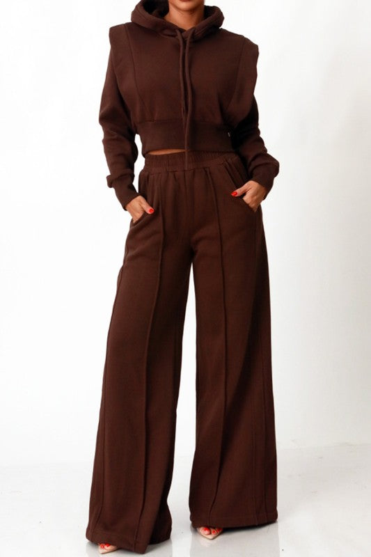 Rock a bold look with this sculptural shoulder crop hoodie paired with relaxed wide-leg joggers—a fun and stylish combo that’s perfect for making a statement.